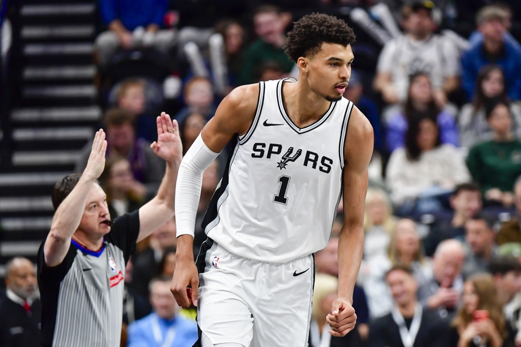 谈到文班休赛期的发育,他说:“听说他长高了,这事还挺有意思。太夸张了,他现在都快7尺4寸(约2.24米)了,他最近的表现是真的惊艳。而且看他在场上碾压对手的样子,那场面真的吓人,兄弟。要是他能一直保持这个状态,他很可能会成为我们见过的最强大个子球员。”